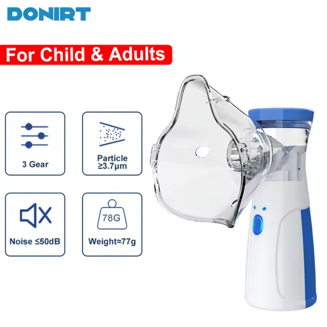 Designed for shared use, the device comes with an adult mask, child mask, and mouthpiece — perfect for families with multiple users.